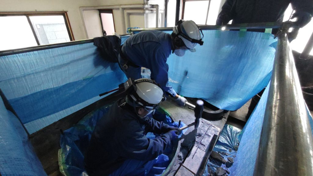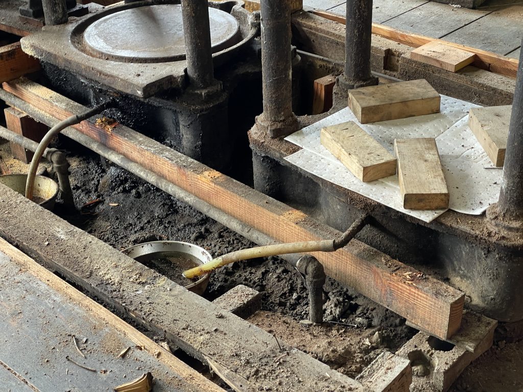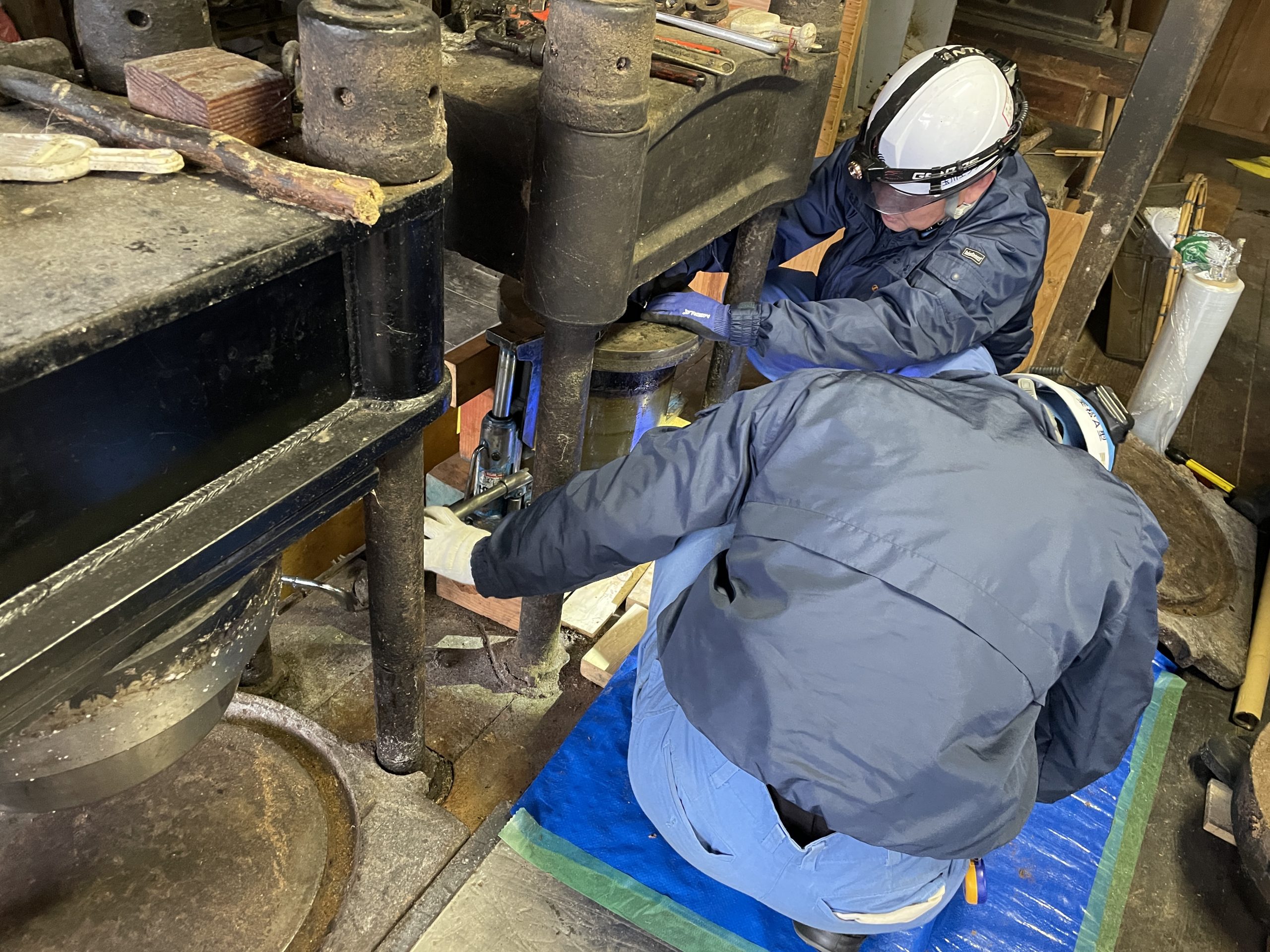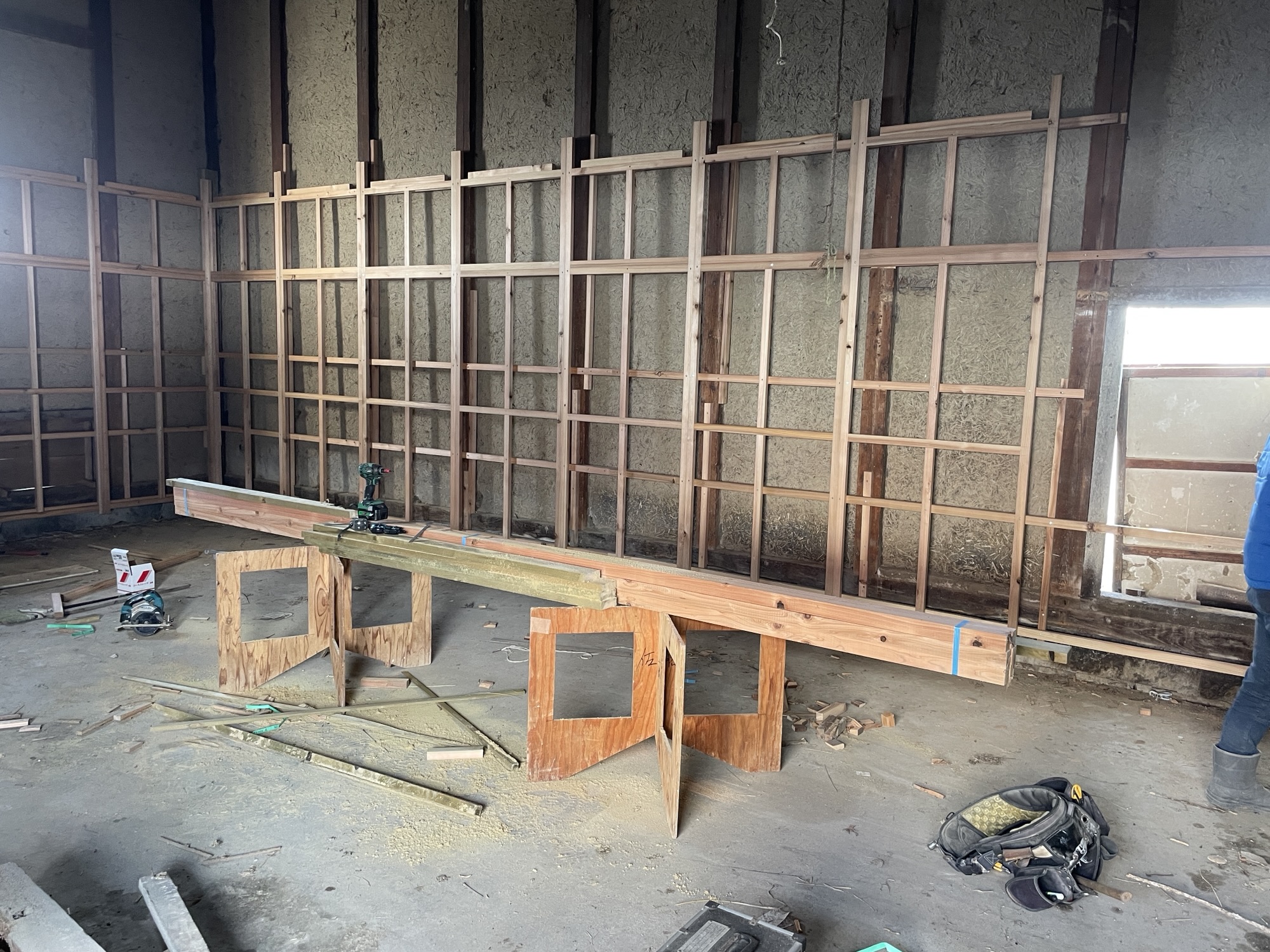 結局、食品加工(搾油)関係はすべて蔵内に収め、下屋は、食品ではない油粕の粉砕などになりました。そのため蔵内のみ天井、耐水性の壁(石膏ボード)を張り、食品衛生法上の対応を取ることにしました。